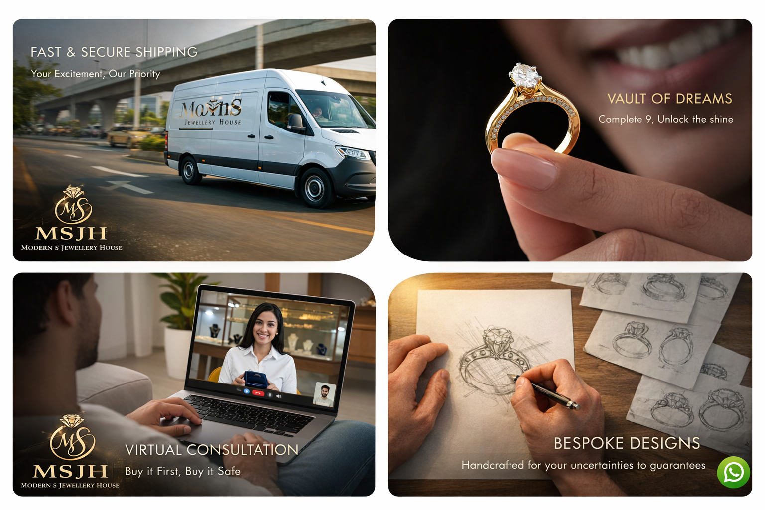 Custom designs, Video consults, Fast delivery